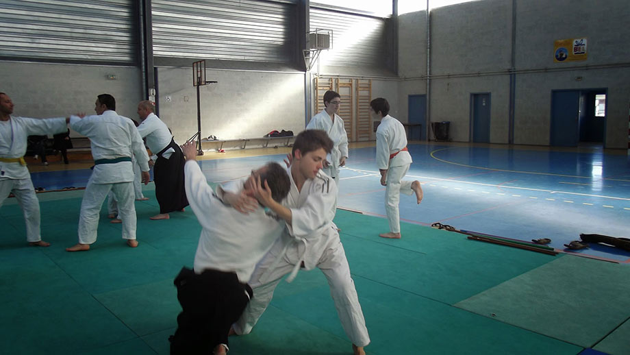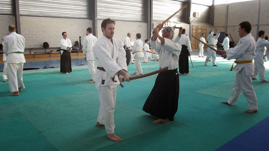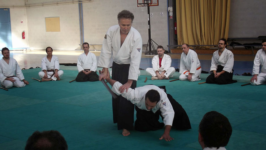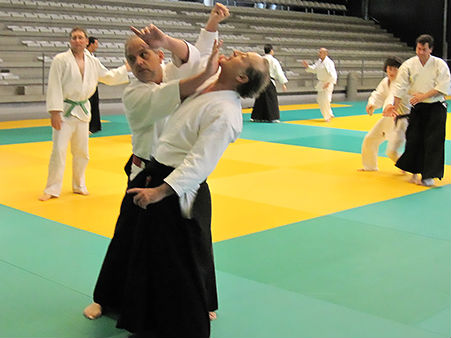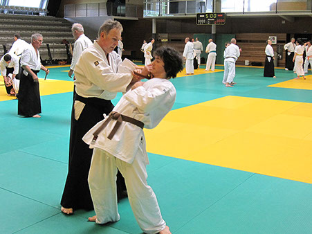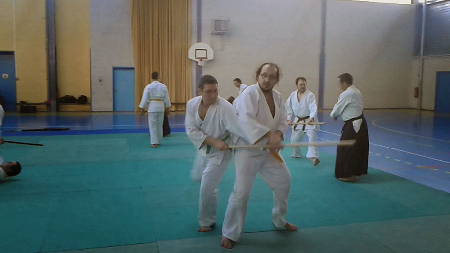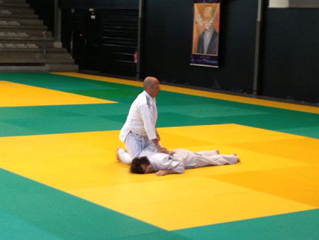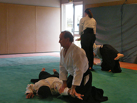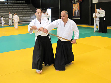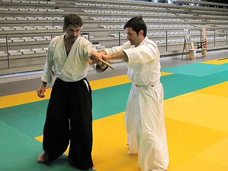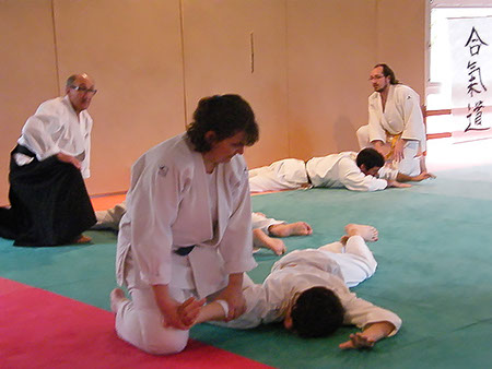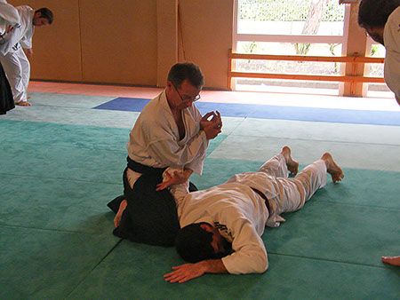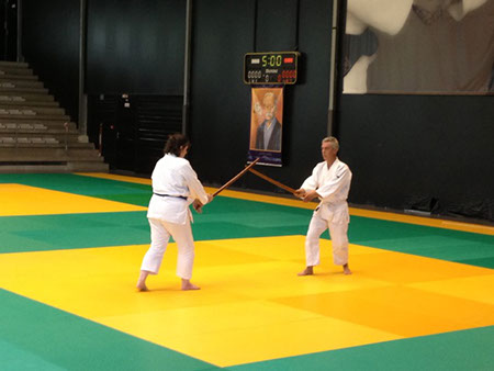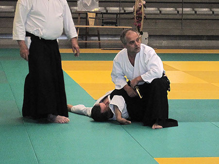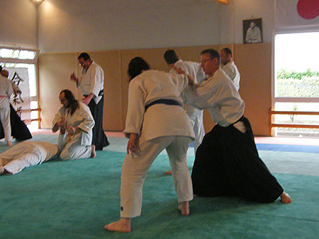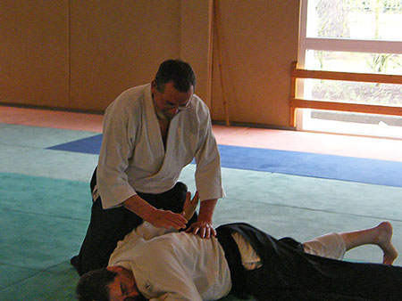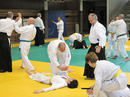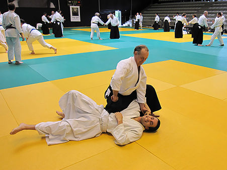 Cette journée placée sous la direction de Maurice Mansart nous a permis d'approfondir le troisième principe d'immobilisation, sankyo, et d'en explorer les applications, tant à mains nues qu'au bâton et au couteau.