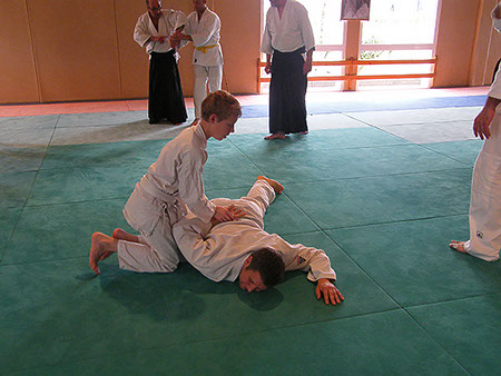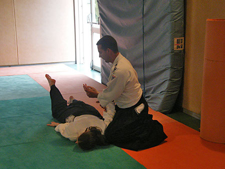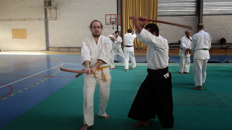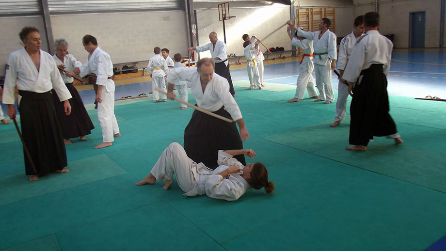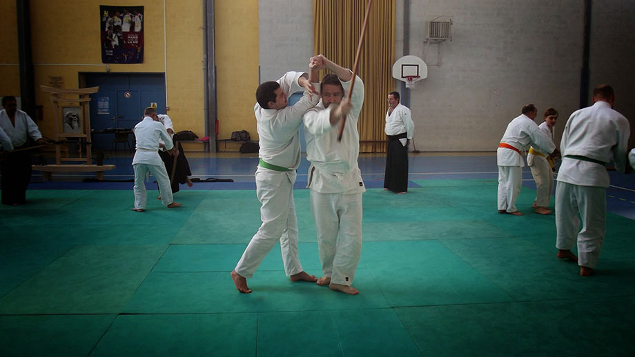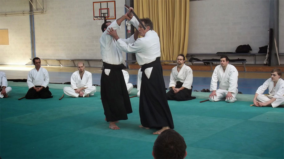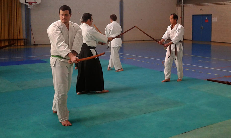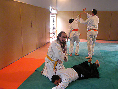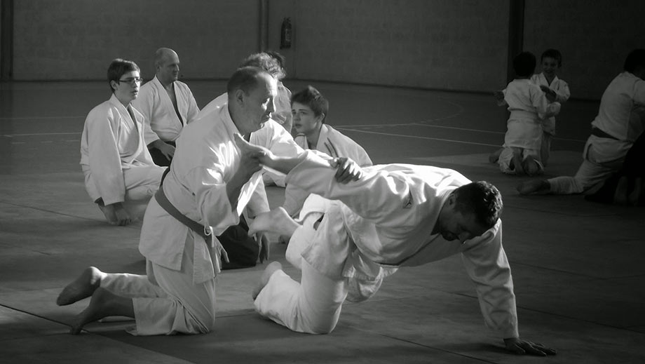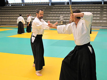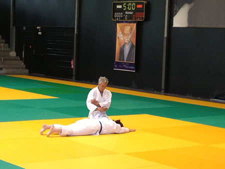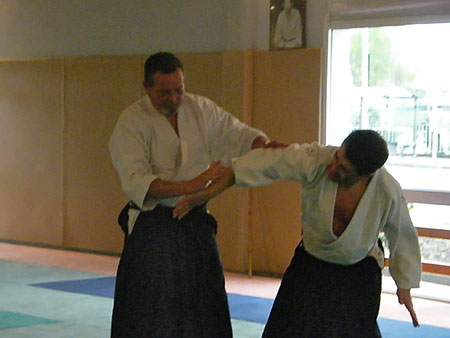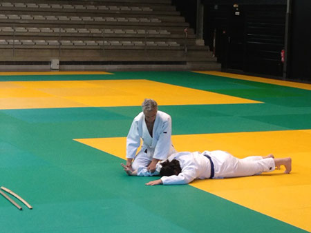 Cette journée placée sous la direction de Maurice Mansart nous a permis d'approfondir le troisième principe d'immobilisation, sankyo, et d'en explorer les applications, tant à mains nues qu'au bâton et au couteau.