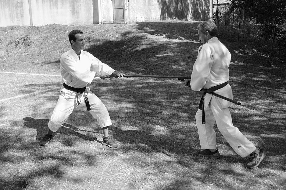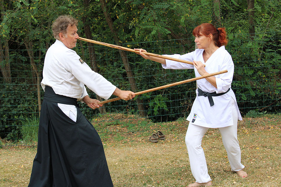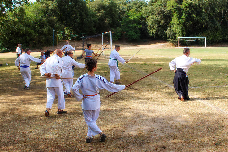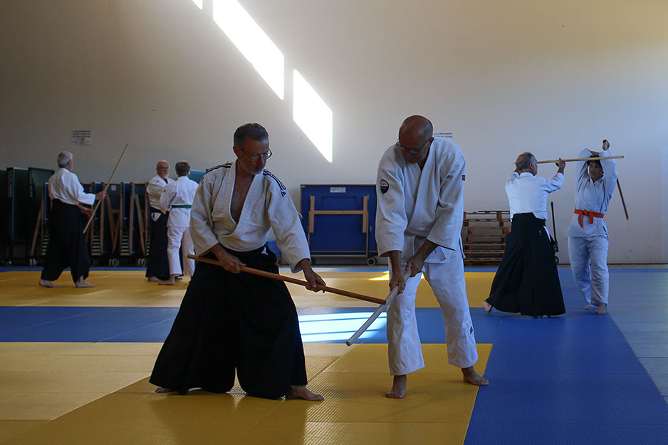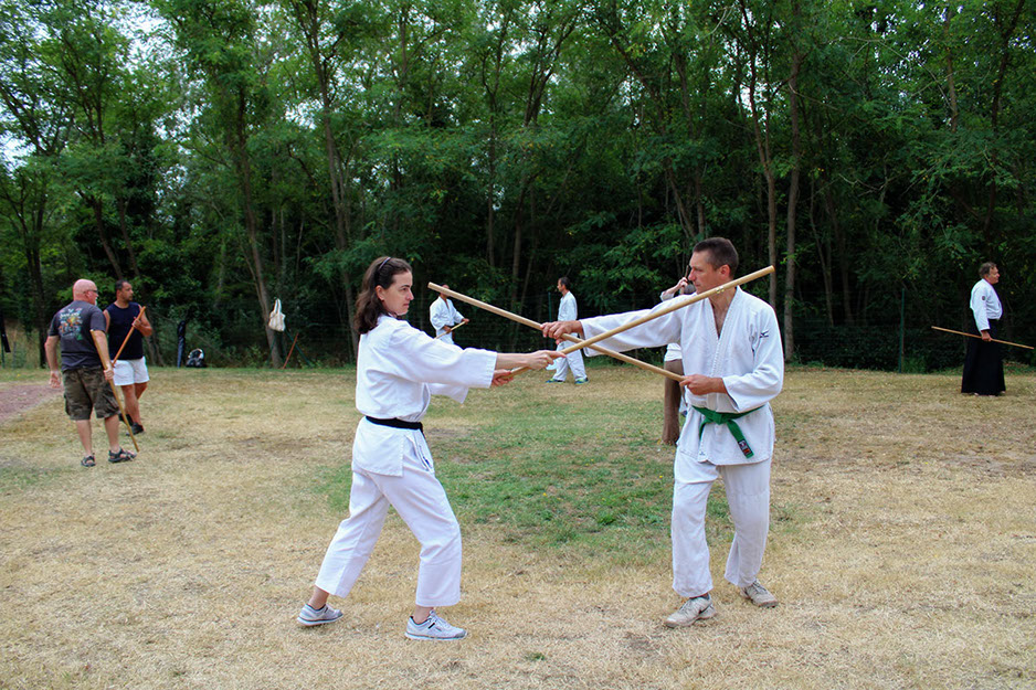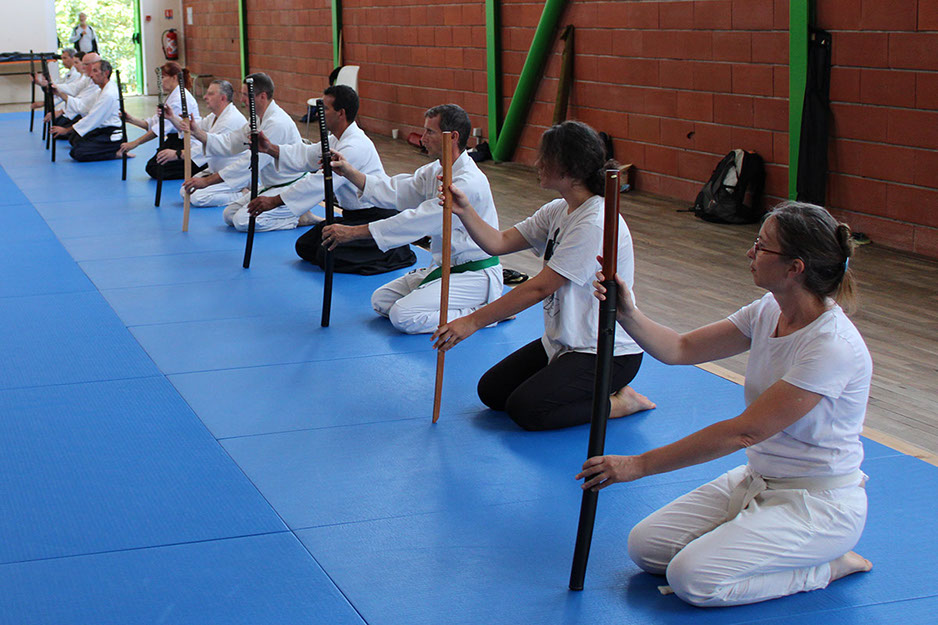 Nous n'avons su que très tard que le stage d'été serait maintenu. Finalement, le centre sportif de Boyardville a ouvert ses portes avec les consignes sanitaires d'usage et une restriction de chambres allouées. Nous étions donc moins nombreux que les autres années et pour respecter la distance sociale, nous avons dû travailler en deux groupes, l'un dans le dojo et l'autre en extérieur en alternance. Enfin, pour éviter tout contact, nous avons pratiqué exclusivement les armes (jo, boken et katana), ce qui n'a pas empêché la diversité puisque puisque Maître Brun nous a légué une pratique aux armes particulièrement développée et riche, cela dès les premiers kyu.