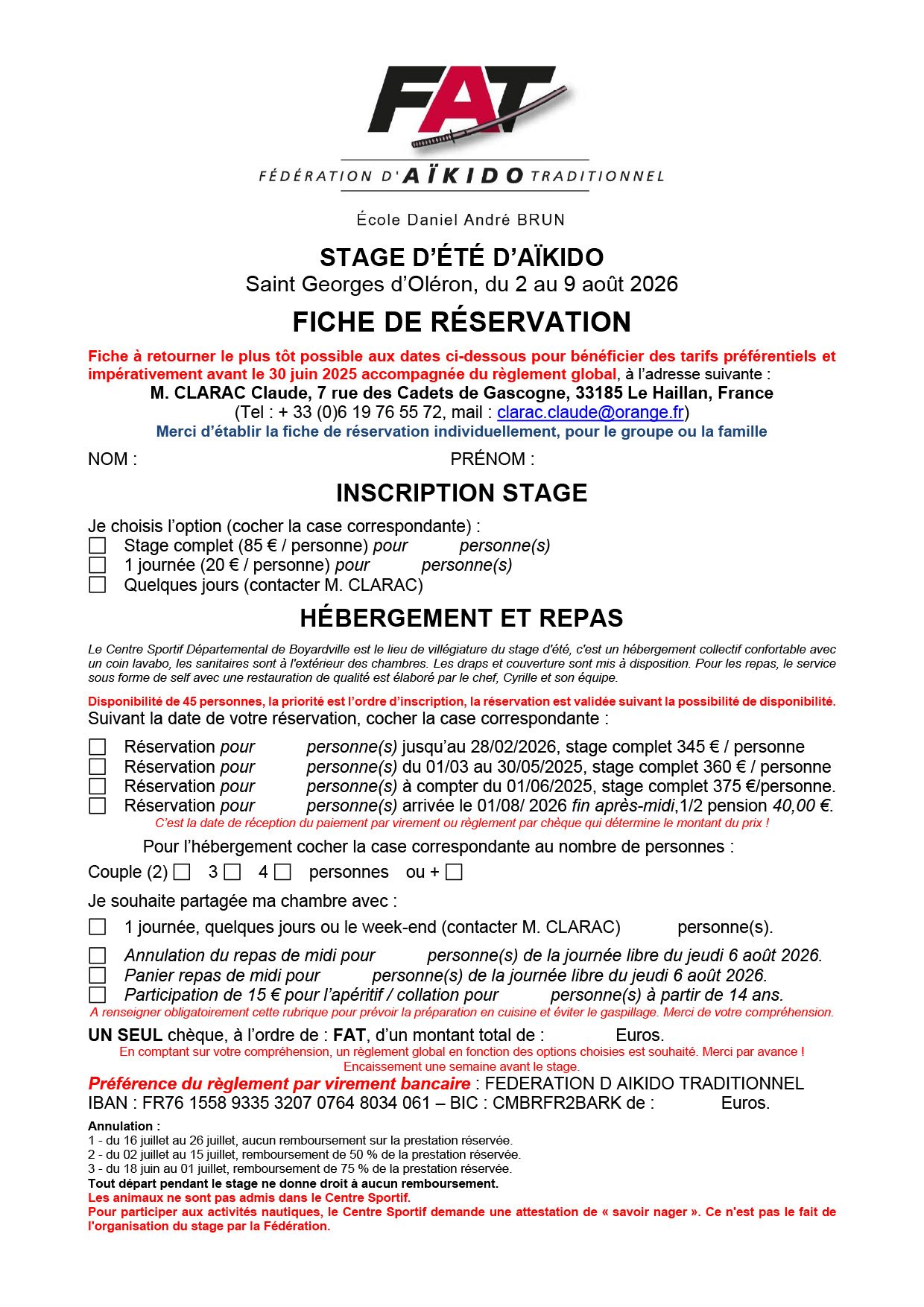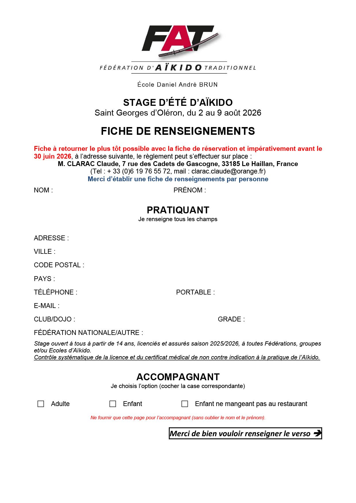 Formulaire d'inscription au stage d'été